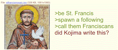 a thread on /b/ died for this The Franciscans follow the example of St. Francis of Assici, attempting to live every day in poverty and penitence, chastity and obedience. Their objective is to live the Gospel, renouncing personal ownership and living in brotherhood while tending to the cries of the needy and serving the community around them. I like to think as orders like the Dominicans as the brains of the Church, with a big emphasis on studying philosophy and preaching the theological truths they gleam from their study, and someone like the Franciscans as the heart of the Church, putting into practice what Christ did and taught in a more direct way. Not everyone is called to this way of life. To be honest, when I think of the man who heard "sell everything you have and give to the poor [...] then come and follow me" and did just that, I'm still a bit frightened. If you abstract yourself and think of it as just an argument, it may seem like an easy choice - life on Earth is temporary, life with God is eternal; nothing you own is as valuable as that, and self-sacrifice for the sake of your neighbour is pretty much what Christ did - but I have found that I still have a lot of attachment to things around me. My 3D printer, my games and their respective consoles, my books, my VR headset, my research (which may not sound like it's part of the pattern, but it is) - none of these are particularly valuable if I'm called to the Franciscan charism, but I would not be lying if I said these belongings are all things I would rather keep around than not. Plus if I were to be called to marriage (or even just the diocesan priesthood), these would all be things that could be important in the way they are to me right now. These are the difficulties and questions I brought in my heart as I took the bus to the convent where I would meet the other aspirants for the weekend. During the weekend I would pray, eat and sleep under the same roof as the friars in this convent, as I would question and contemplate the answers to different parts of this vocation. So too would the other aspirants, who will go unnamed but that surprisingly are the first people in a long time I managed to remember the name of after meeting them for the first time. Friday was the welcoming moment, where we got an overview of what the weekend would look like. Saturday was the big discernment moment, with the previous vocations director joining us for the morning, prayer of the rosary and a second moment of reflection in the afternoon, along with silence. This is when I really had the time to pray about, meditate on and understand my worries. Sunday was going to be a mass and then lunch, after which we were free to go home at any time. My bus was bound for 7PM, which gave me time to ask questions of the other friars. Here are some noteworthy moments: